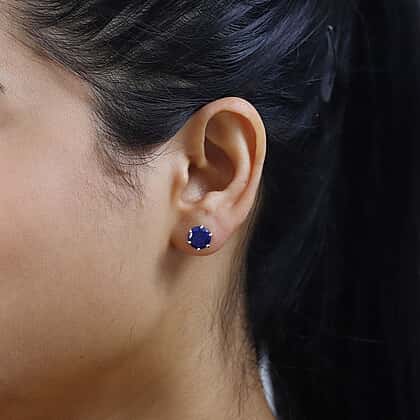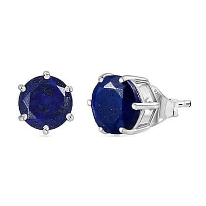 Lapis Lazuli Siolitaire Stud Earrings in Platinum Overlay Sterling Silver 4.18 Ct