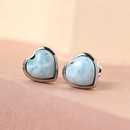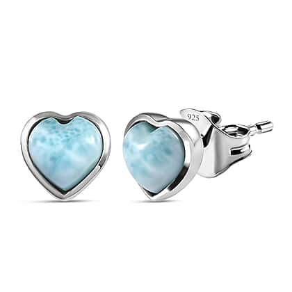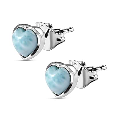 Larimar Heart Stud Earrings (With Push Back) in Platinum Overlay Sterling Silver 2.03 Ct.