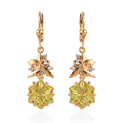 GP 11.16 Ct Brazilian Green Gold Quartz and Multi Gemstone Floral Drop Earrings in Gold Plated Silver