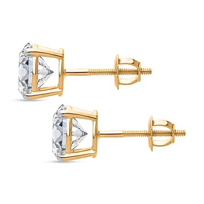 LUXURIANT 3 Ct. Lab Grown Diamond Solitaire Stud Earring with Screw Back in 18K Yellow Gold, SGL Certified (VS-EF)