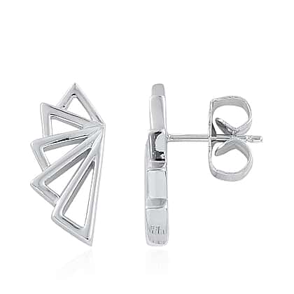 Elevate your jewellery collection with these striking Art Deco-inspired designer earrings from Lucy Q. Crafted in rhodium overlay sterling silver, they feature an open geometric fan design, adding a contemporary yet timeless touch to any look. The sleek metalwork offers a lightweight feel while maintaining durability and a lasting shine. Hypoallergenic and tarnish-resistant, these earrings ensure comfort and elegance for daily wear. The push-back closure provides a secure fit, making them perfect for effortless styling. Whether paired with a casual outfit or evening attire, these unique earrings are a statement of modern sophistication and artistic expression.