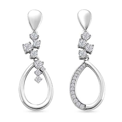 Move towards refined elegance with these contemporary Lucy Q moissanite dangling earrings. These earrings feature a teardrop silhouette adorned with round moissanites. They have an openwork design and feel like moissanites floating in the air! These dangling earrings have a delicate yet sculptural feel. At the top lies a pear-cut design motif with the pointed tip facing downwards. Crafted in rhodium overlay sterling silver, these moissanite earrings come with a butterfly back closure. For those looking to add sparkle and playful movement to their look, these are the dangling earrings that you need to add to your jewellery collection.