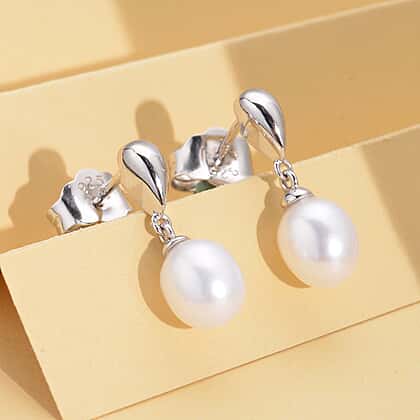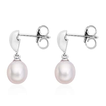 Lucy Q Fluid Pearl Collection - Freshwater Pearl Dangling Earrings (With Push Back) in Rhodium Overlay Sterling Silver