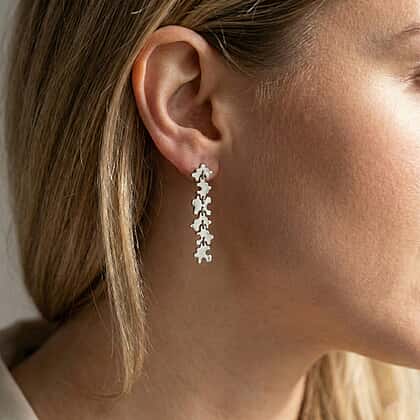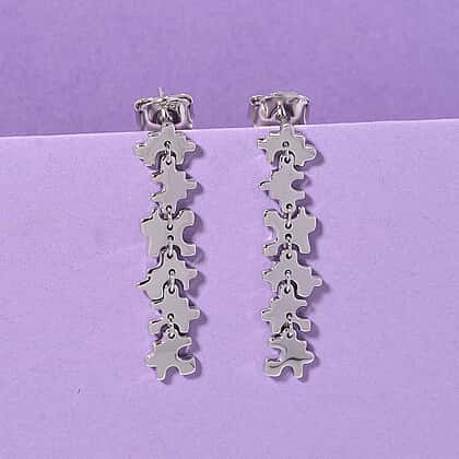 Lucy Q Jigsaw Collection - Puzzle Piece Dangle Earring with Push Back in Rhodium Overlay Sterling Silver, Silver Wt. 7.00 Gms