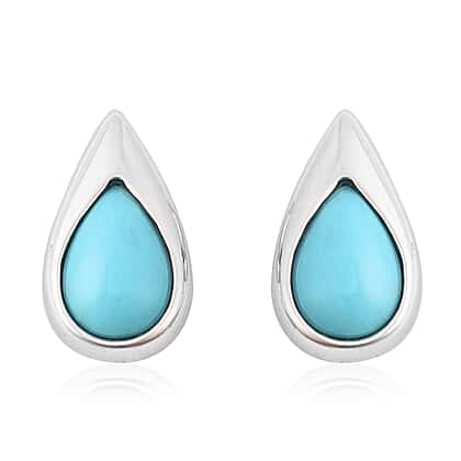 LucyQ AAA Arizona Sleeping Beauty Turquoise Drop Stud Earrings (with Push Back) in Rhodium Overlay Sterling Silver 2.06 Ct.
