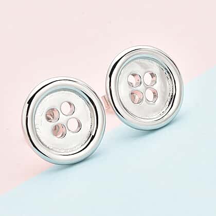 LucyQ Button Collection - Rhodium Overlay Sterling Silver Earrings(With Push Back)