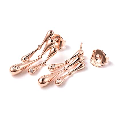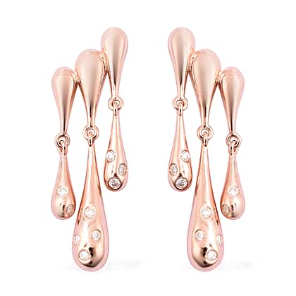 LucyQ Drip Collection - White Moissanite Earrings (with Push Back) in Rose Gold Overlay Sterling Silver, Silver wt. 9.84 Gms
