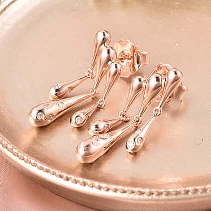 Lucy Q Drip Collection - White Moissanite Earrings in Rose Gold Plated Sterling Silver