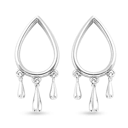 LucyQ Open Tear Drop Collection - Rhodium Overlay Sterling Silver Drip Earrings (with Push Back)