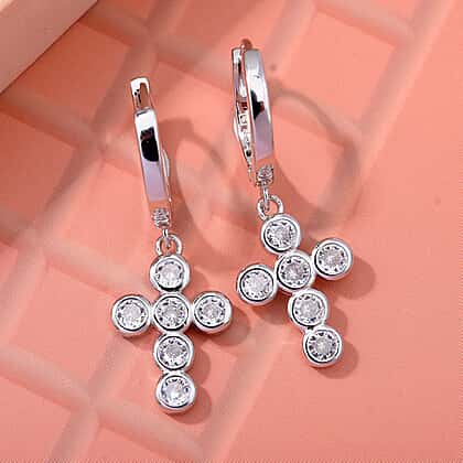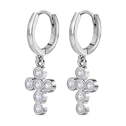 Lustro Stella - Cubic Zirconia Cross Earrings in Rhodium Overlay Sterling Silver Silver
