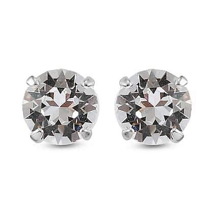 Lustro Stella - White Crystal Stud Earrings (with Push Back) in Sterling Silver