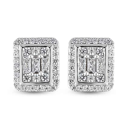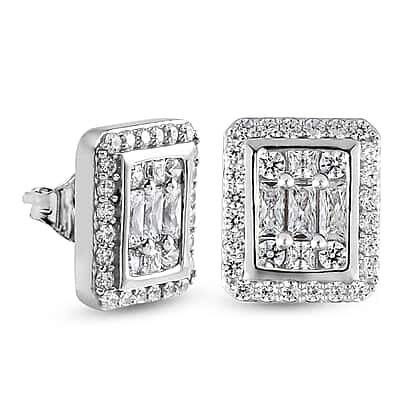 Lustro Stella Made with Finest CZ 3.24 Carat Stud Earrings in Platinum Plated Sterling Silver