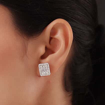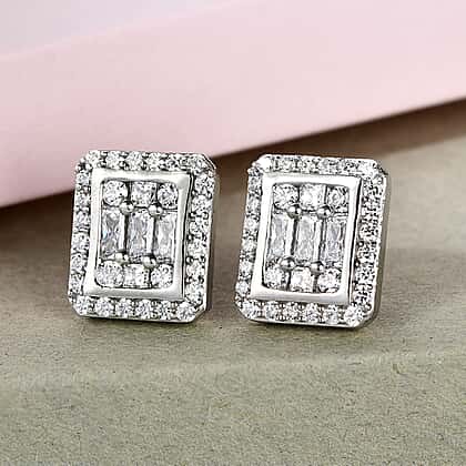 Lustro Stella Platinum Overlay Sterling Silver Stud Earrings Made with Finest CZ 3.24 Ct.