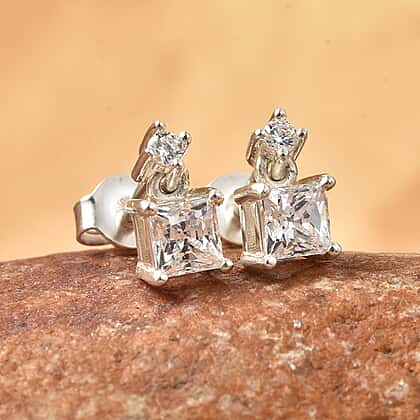 Lustro Stella Finest CZ 1.57 Ct. Square Stud Earrings in Sterling Silver