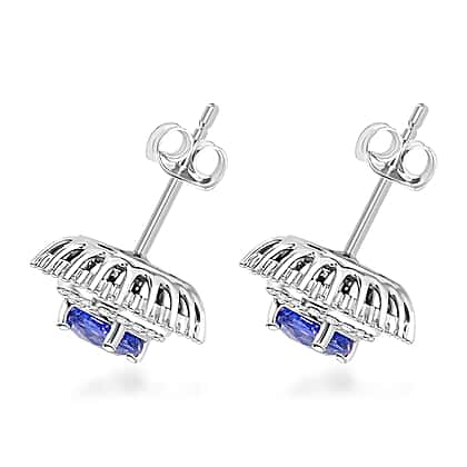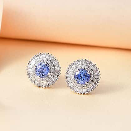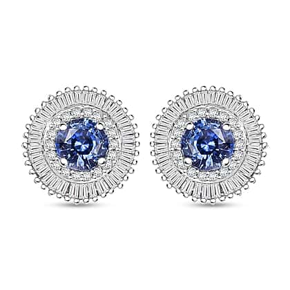 Luxoro 14K White Gold AGI Certified AAA Blue Ceylon Sapphire & White Diamond (I2-GH) Stud Push Post Earring 2.48 Ct.