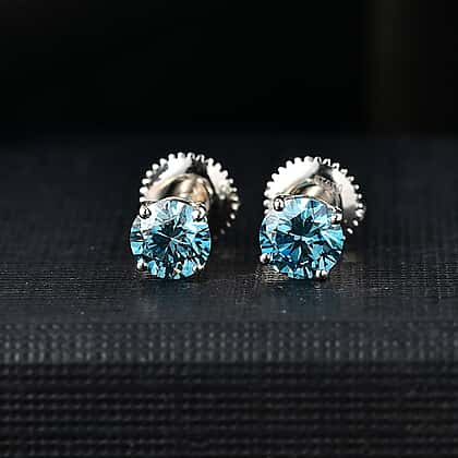 LUXURIANT 950 Platinum SGL Certified Lab Grown VS Blue Diamond Solitaire Studs With Screw Back Earring 1 Ct.