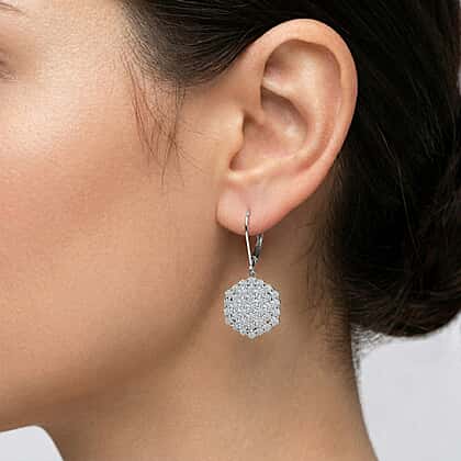 Turn every glance into a moment of brilliance with these Luxuriant Lab Grown Diamond Pressure Set Earrings, designed to deliver striking sparkle with a refined finish. The round drop design is fully encrusted with shimmering lab-grown diamonds, creating a radiant, light-catching surface that feels bold yet beautifully balanced. Crafted in rhodium overlay on 925 sterling silver, these earrings ensure lasting shine and durability. Paired with a sleek lever back hook, they offer both beauty in movement and secure, comfortable wear throughout the day or evening. A standout pair for those who love statements shine with a sophisticated edge.