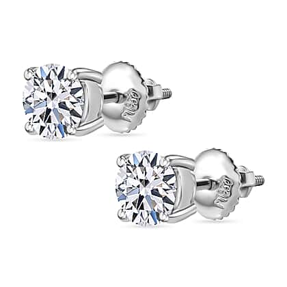 Luxuriant 950 Platinum SGL Certified Lab Grown Diamond (SI-GH) Solitaire Stud Screw Back Earring 1.50 Ct.