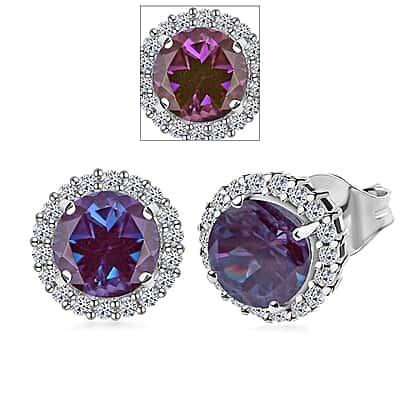 Appraised & Certified LUXURIANT 10K White Gold AAA Lab Grown Alexandrite, Lab Grown Diamond GH, SI Earring, 3.79 Ct.
