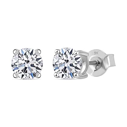 LUXURIANT 1.5 Ct. Lab Grown Diamond Solitaire Stud Earring with Push Back in 9K White Gold (SI-GH)