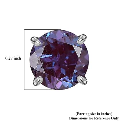 Luxuriant Diamond 10K White Gold AAA Lab Grown Color Change Sapphire Solitaire Stud Push Post Earring, Gold Wt.0.52 Gms 3.344 Ct.