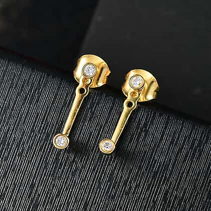 LUXURIANT Lab Grown Diamond Drop Stud Earring with Push Back in 18K Vermeil Yellow Gold Plated Sterling Silver (SI-GH)