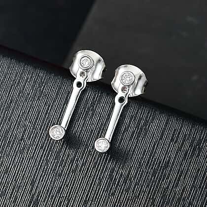 LUXURIANT Lab Grown Diamond Solitaire Earrings in Rhodium Overlay Sterling Silver