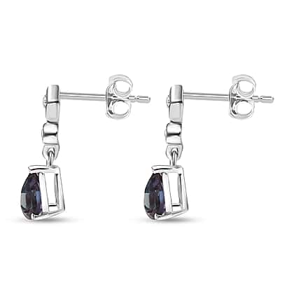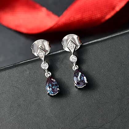 Luxuriant Lab Grown Alexandrite & White Zircon Dangling Earring in Rhodium Overlay Sterling Silver 1.00 Ct.