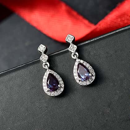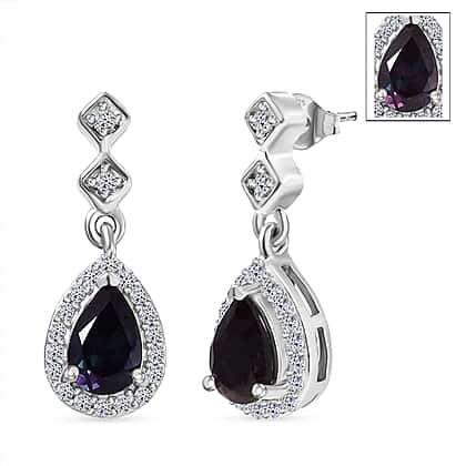 Luxuriant Lab Grown Alexandrite & White Zircon Dangling Earring in Rhodium Overlay Sterling Silver 1.14 Ct.