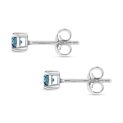 LUXURIANT 0.50 Ct. Lab Grown Blue Diamond Brilliant-Cut Solitaire Stud Earring with Push Back in Rhodium Overlay Sterling Silver (VS-EF)