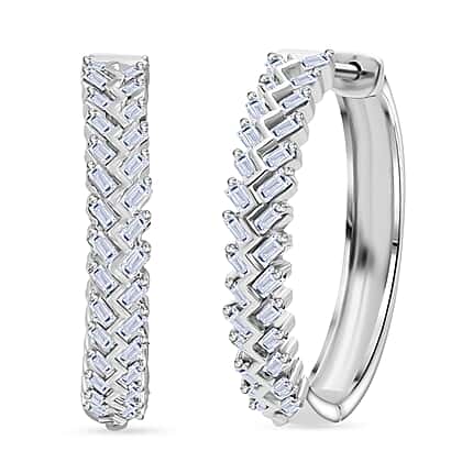 LUXURIANT Lab Grown Diamond Hoop Earring in Rhodium Overlay Sterling Silver (SI-GH)