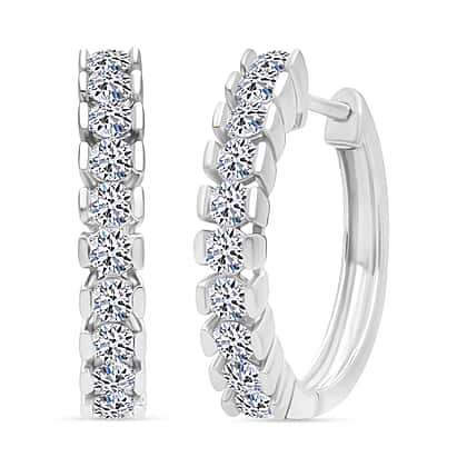 LUXURIANT 1 Ct. Lab Grown Diamond Earring with Hoop in Rhodium Overlay Sterling Silver (SI-GH)