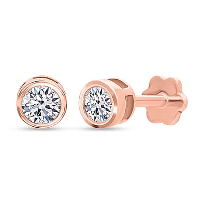 LUXURIANT 0.3 Ct. Lab Grown Diamond Stud, Solitaire Earrings in 18K Vermeil Rose Gold Plated Sterling Silver