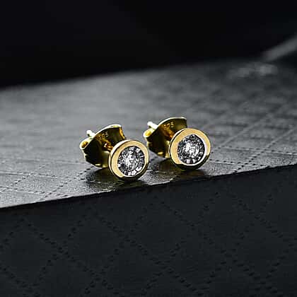 Luxuriant Lab Grown Diamond Solitaire Stud Push Post Earring in 18K Vermeil Yellow Gold Plated Sterling Silver