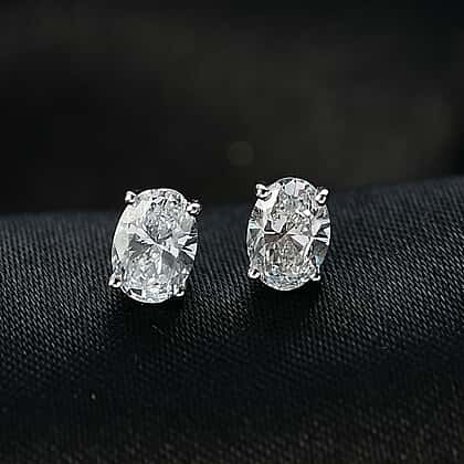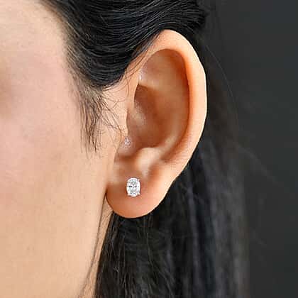 Luxuriant Lab Grown Diamond Solitaire Stud Push Post Earring in Rhodium OverlaySterling Silver 1.030 Ct.