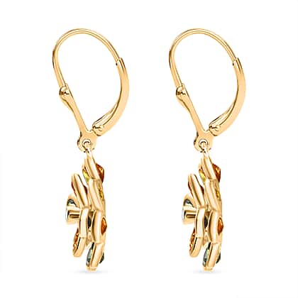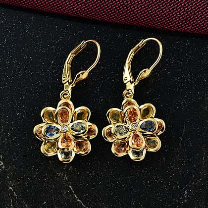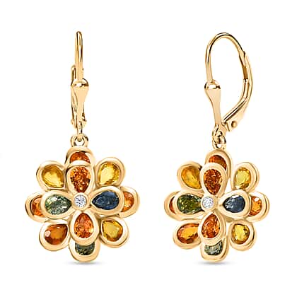 Luxuriant Rainbow Sapphire & Lab Grown Diamond (SI-GH) Floral Earring with Lever Back in 18K Vermeil Yellow Gold Plated Sterling Silver 4.93 Ct.