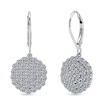 Luxuriant SI-G-H Lab Grown Diamond Cluster Earring with Lever Back in Rhodium Overlay Sterling Silver 3.00 Ct.