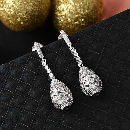 - Teardrop drop design with a pave-style diamond surface