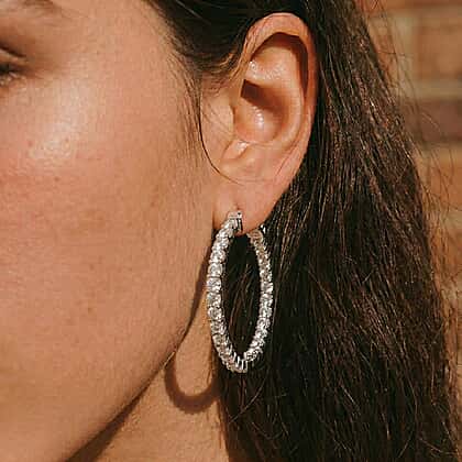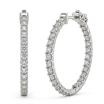 LUXURIANT 2.5 Ct. Lab Grown Diamond Full Hoop Earring in Rhodium Overlay Sterling Silver (SI-G-H)