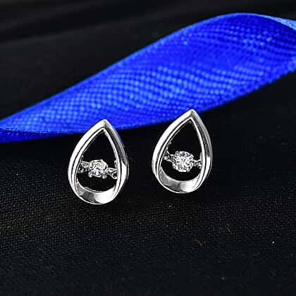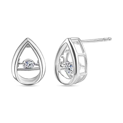 LUXURIANT Lab Grown Diamond TearDrop Solitaire Earring in Rhodium Overlay Sterling Silver 0.21 Ct.