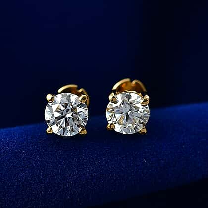 Luxuriant SI-G-H Lab Grown Diamond Solitaire Stud Earring with Screw Back in 18K Vermeil Yellow Gold Plated Sterling Silver 1.01 Ct.