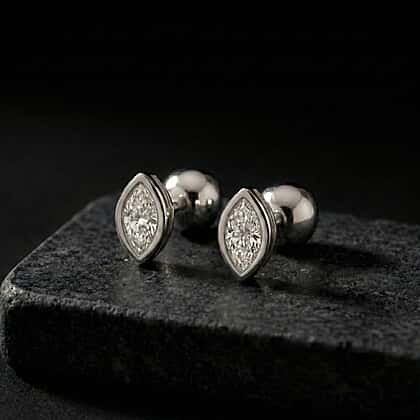 Luxuriant SI-GH Lab Grown Diamond Earring with Ball Screw Back in Rhodium Overlay Sterling Silver