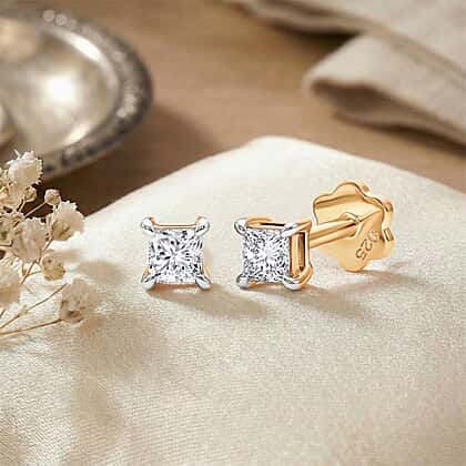 Luxuriant VS-EF Lab Grown Diamond Earring with Screw Back in 18K Vermeil Yellow Gold Plated Sterling Silver 0.32 Ct.
