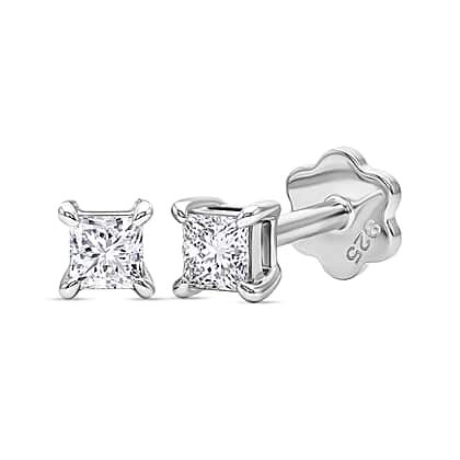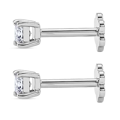 Luxuriant VS-EF Lab Grown Diamond Earring with Screw Back in Rhodium Overlay Sterling Silver 0.32 Ct.