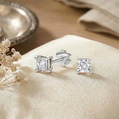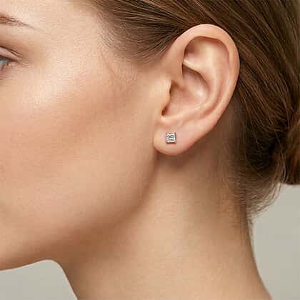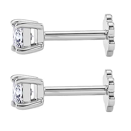 Luxuriant VS-EF Lab Grown Diamond Earring with Screw Back in Rhodium Overlay Sterling Silver 0.50 Ct.