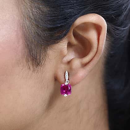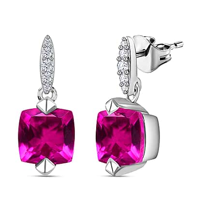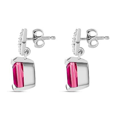 Magenta Rose Color Triplet Quartz & Natural Zircon Stud Earrings in Platinum Overlay Sterling Silver 5.52 Ct