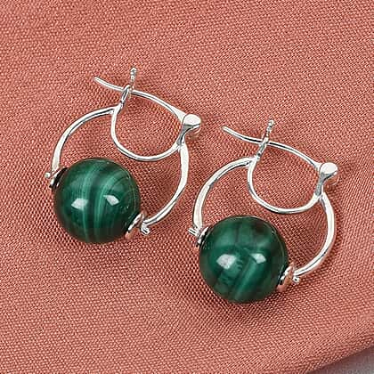 5 Ct. Malachite Single Bead Hoop Earrings in Sterling Silver