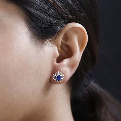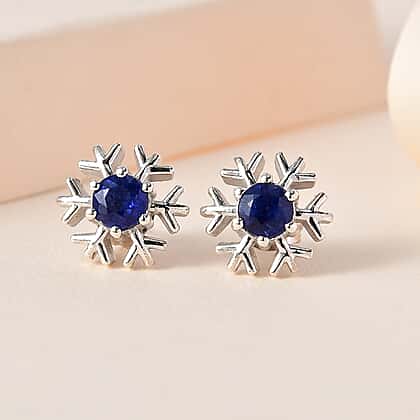 Masoala Sapphire Solitaire Stud Earrings in Platinum Overlay Sterling Silver 1.41 Ct.