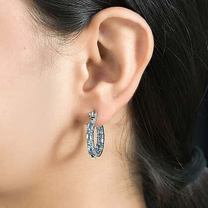 Drape your ears in the cool watery hues of the Sky Blue Topaz Inside Out Hoop Earrings. The earrings in Stainless Steel are sturdy and their robust build is complemented by a sheen that does not tarnish after regular use. The ingenious setting of the stones lends a fuller and more ornamental look to the hoops.