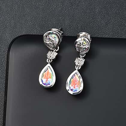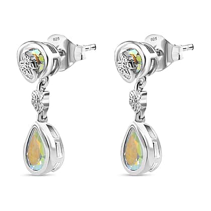 Mercury Mystic Topaz Dangle Earrings in Rhodium Overlay Sterling Silver 3.07 Ct.